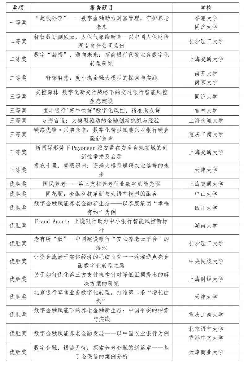 本次大赛吸引了来自全国逾百所高校共250支队伍报名参赛,经过文本初筛、网络初赛等环节,最终来自上海交通大学、香港大学、同济大学、南开大学、南京大学、中山大学、天津大学、湖南大学、上海财经大学等17所高校的21支队伍晋级决赛。其中,必赢官网经管学院共两支队伍进入决赛。入围全国决赛的作品分别聚焦“人工智能大模型应用”“金融机构数字化转型”“促进跨境支付便利”“数字金融赋能养老金融发展”四个主题方向。
