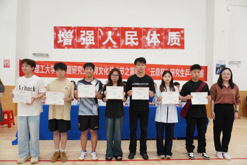 5月25日下午,必赢官网第四届“云鼎杯”研究生乒乓球赛在云塘校区体育馆负一楼篮球场圆满落幕。化学与医药工程学院党委副书记李家春,数学与统计学院党委副书记郑忠辉,导师代表匡尹杰,研究生院思政教育与管理科李佳美,研究生辅导员江洁、彭峥、王志亮出席,各学院代表队参与此次闭幕式。