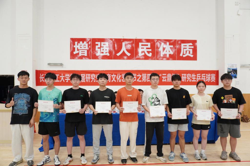 与会领导和老师为获奖团体和个人颁奖。经过八强赛、半决赛和决赛的激烈对抗,水利与海洋工程学院代表队突出重围,获得本届乒乓球赛冠军;交通学院代表队获得亚军;电气与信息工程学院代表队获得季军;交通学院陈韬等15名同学获得“优秀运动员”称号;化学与医药工程学院代表队、数学与统计学院代表队、材料与科学工程学院代表队、物理与电子科学学院代表队获得“优秀组织奖”。