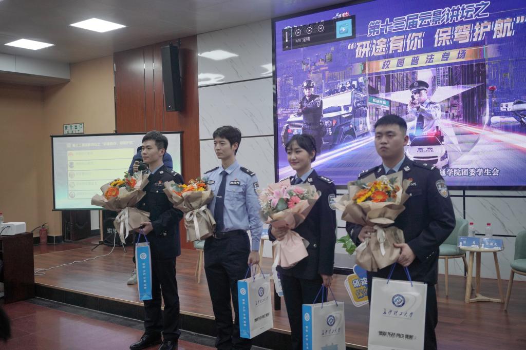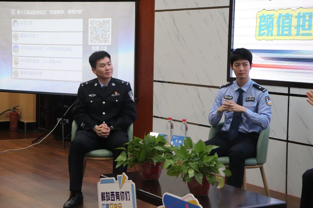 12月22日晚七点,《守护解放西》的“明星”警官及节目组应437必赢会员中心校研究生团学组织的邀请做客云影讲坛,在金盆岭校区四教报告厅举行了一场“研途有你,保驾护航”主题讲座。来自长沙市坡子街派出所的陈慧、涂瀚文、欧阳睿乙、齐翔宇警官受邀出席,为现场200余名师生带来了一场别开生面的校园普法活动。