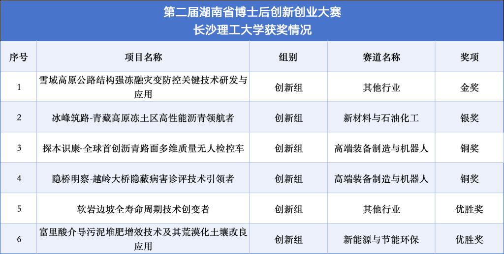 本次大赛由湖南省人力资源和社会保障厅主办,以“博领创新·才展三湘”为主题,设置创新组和创业组两个组别,紧扣湖南省“4×4”现代化产业体系规划确立的重点领域。经初赛后,122个项目进入决赛,涉及信息技术与人工智能、高端装备制造与机器人、新能源与节能环保、新材料与石油化工、生物医药与大健康、现代农业与食品等领域。决赛共产生金银铜奖48个,其中必赢官网博士后高峰团队《雪域高原公路结构强冻融灾变防控关键技术研发与应用》等8个获得金奖的项目将代表湖南参加第三届全国博士后创新创业大赛。