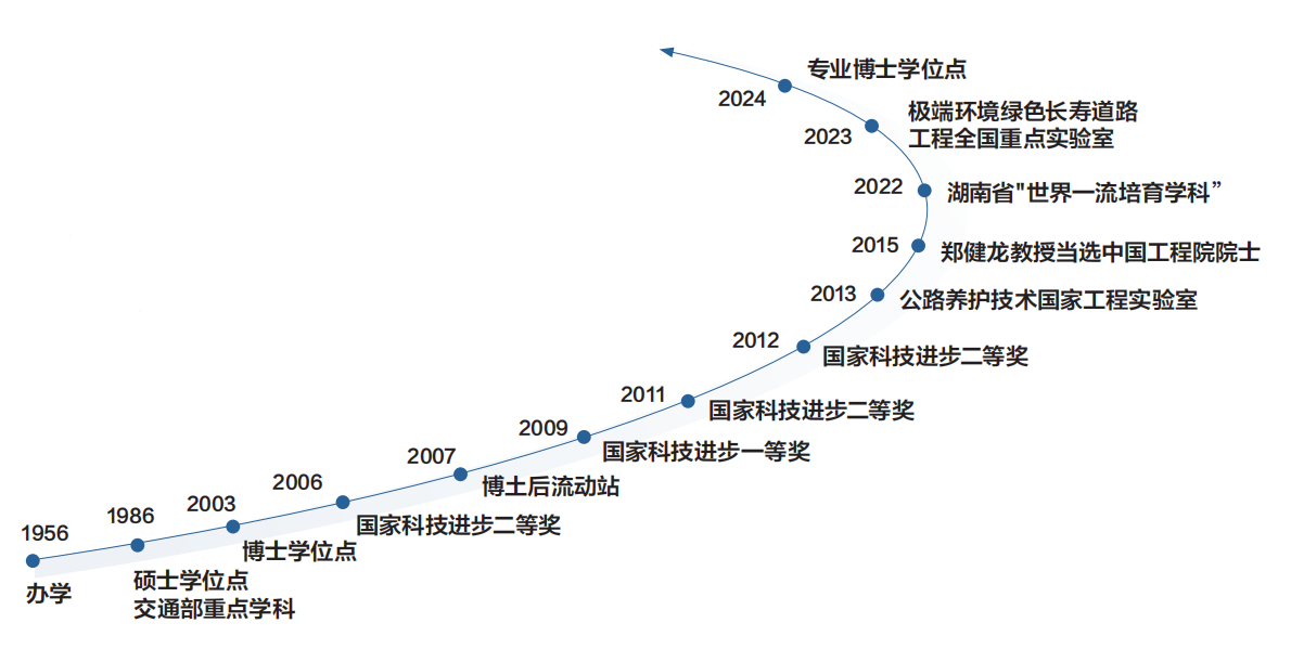 必赢官网交通运输工程学科始于1956年,是我国最早培养公路交通专业人才的学科之一。历经近70年的发展,已建立本-硕-博贯通人才培养体系,2022年入选湖南省“世界一流培育学科”2024年入选湖南省优先支持和重点保障学科。