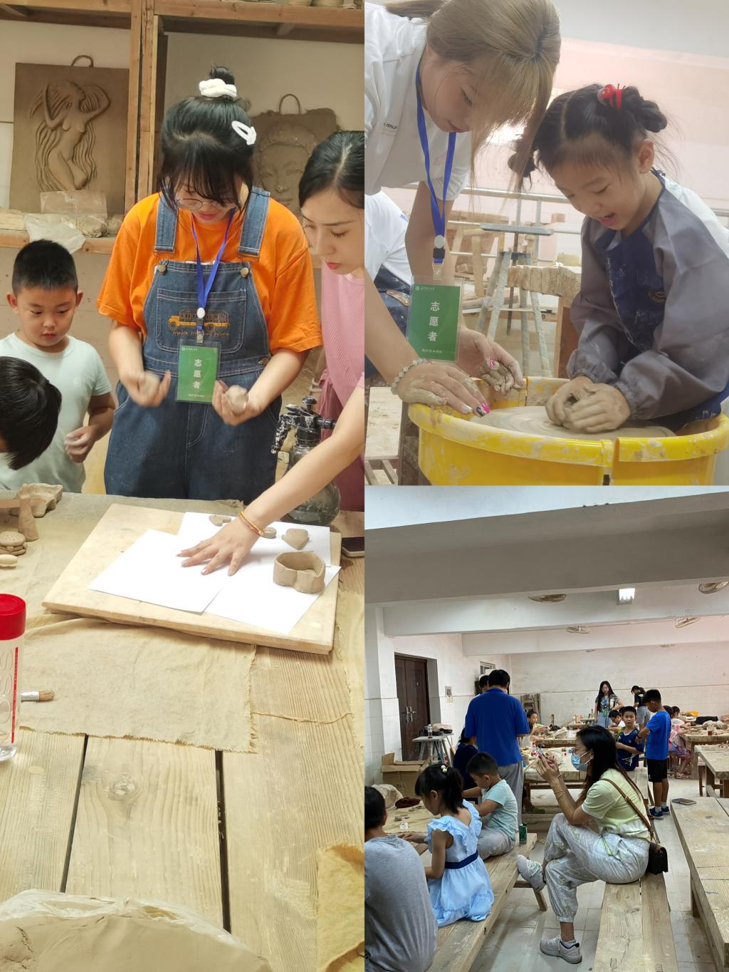103日第一天活动期间,有校机关、经管学院、能动学院、化学学院、物电学院、数统学院、外国语学院、图书馆等10余个单位和部门的60多名教职工子弟在我院老师和学生志愿者的带领下进行了陶艺体验和儿童影视艺术观摩。