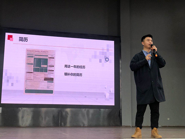 各年级首先由年级辅导员做学业总结,2019级表彰了1名“英语之星”和3名“学习之星”并邀请视传1703班刘圣文和数媒1801班樊明焱分享学习经验,辅导员傅冰着重强调了外出考察写生的安全问题。2018级表彰了3名“英语之星”和5名“学习之星”并邀请产品1701班刘烨和服装1701班田雨禾分享学习经验,辅导员朱思远建议学生明确学业目标,确定择业方向。2017级邀请2015级环境艺术专业校友何健做求职经验分享,年级辅导员陈鑫宇提醒毕业生戒骄戒躁,认真完成专业课程内容。就业辅导员武巧琳分析当前就业形势、鼓励毕业生积极参加招聘会并解答同学们就业中遇到的问题。