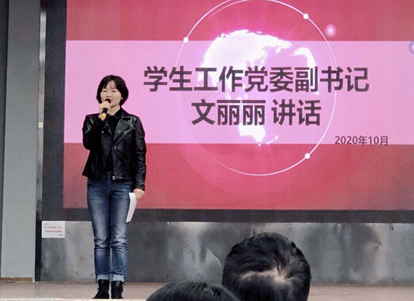 文丽丽副书记结合各年级实际情况,从习近平总书记在湖南大学考察时对青年学生的寄语说起,要求同学们不负青春,规划好自己的学习生活;不负韶华,以只争朝夕的紧迫感集中精力锤炼本领;不负时代,敢于追逐梦想创造历史。希望同学们能够成长为“为时代立传、为时代画像、为时代明德的文艺工作者”。