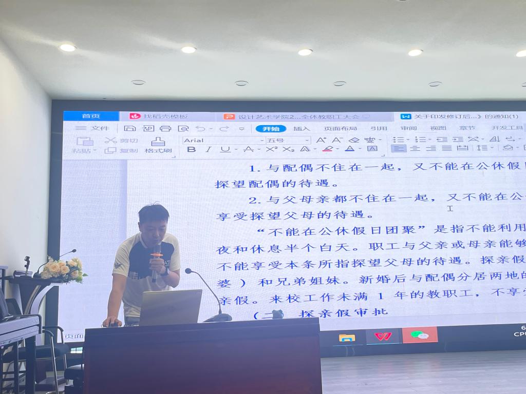 5月30日下午,设计艺术学院在艺术楼A101学术报告厅召开了第五届四次教职工大会,学习传达学校2023年度安全稳定暨校园交通安全集中整治工作会议精神。学院党委书记李伟主持会议,学院领导班子及全体教职工参加会议。