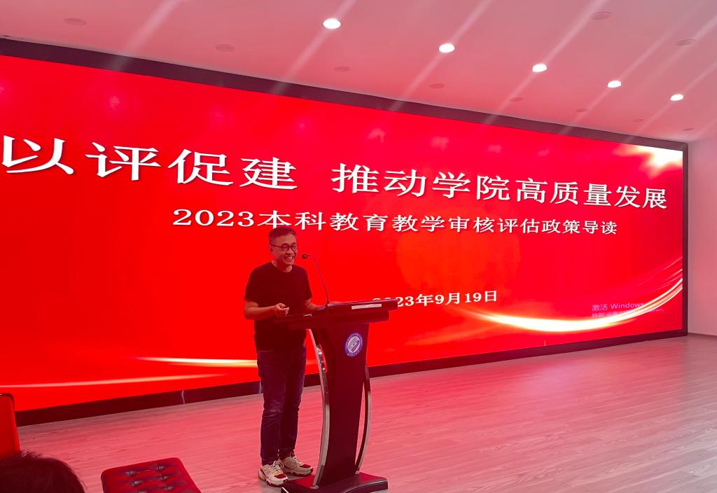 刘卫东副院长结合《本科教育教学审核评估知识手册(教师版)》进行了文件解读和培训。并表示,全体教师需落实人才培养质量最后一公里有效抓手的途径,努力把新一轮教育教学评估实施方案和相关指标体系等学深学透,对照各项评估指标梳理前期教育教学工作,检视存在的问题与不足,立足岗位,做好本职工作,实现以评促建、以评促改、以评促管、以评促强, 全面对接学生中心、产出导向、持续改进的国际先进理念。