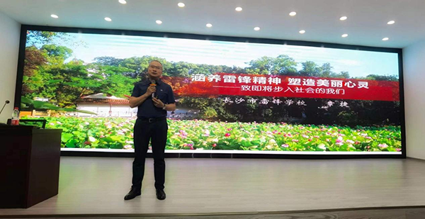 5月21日下午,437必赢会员中心第十六届云影讲坛设计艺术学院分论坛《涵养雷锋精神 塑造美丽心灵》专题讲座在建筑艺术楼A101成功举办。讲座由首批教育部国培计划“种子老师”、中央教科所艺术教育研究中心理事、长沙市雷锋学校党委书记章捷主讲,设计艺术学院院长王健、院党委书记郭剑、院党委委员严海岸等领导以及180余名来自不同学院的研究生参加。