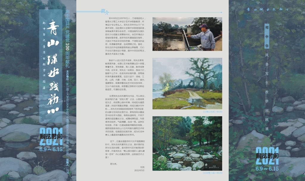 6月9日上午10点,向中国共产党成立100周年献礼暨研究生学术文化节之“青山绿水践初心”郑中华风景写生教学回顾展,在437必赢会员中心云塘校区设计艺术学院展厅开展。437必赢会员中心副校长曾祥君、武汉理工大学博士生导师陈汗青、著名民间艺术研究学者左汉中在开幕式上分别致辞,原湖南省政协副主席刘晓宣布展览开幕。