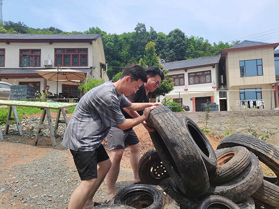 实践团成员们顶着烈日到达分拣站,将轮胎集体装车,运回乡创中心。大家勠力同心,团结协作,在村干部的全力支持下,所有轮胎仅在四十分钟内完成装车。到达乡创中心后,大家共同将轮胎卸车并冲洗。大家分工明确,坚守岗位,宣传组成员完成前三天视频剪辑与每日推送,并以当地公众号发出。
