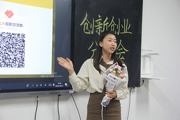 奋楫者先,创新者强,艺术学子们内含创新伟力,蕴藏无限可能。会议过程中,刘晓茹讲解了如何将社会实践灵活转化为学科竞赛的经验方法,为学子们提供了多元化的奋斗方向;刘圣文建议,要找准自身定位,积极参与多学院跨专业合作,将创新创业意识融入大学生活;樊明焱建议利用自身专业与社会热点相结合,积累经验,厚积薄发;马威则向学子们具体介绍了挑战杯、互联网+等多项学科竞赛的基本流程。四位主讲人的慷慨分享为艺术学子的创新创业道路指明了方向。