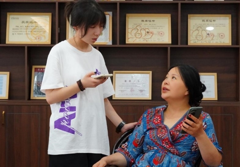 7月11日,团队成员前往靖港古镇对张旭波老师进行采访调研。采访过程中,成员了解到湘绣的一些特殊针法,传承人对湘绣的继承与创新,以及当前湘绣发展所面临的一些问题。