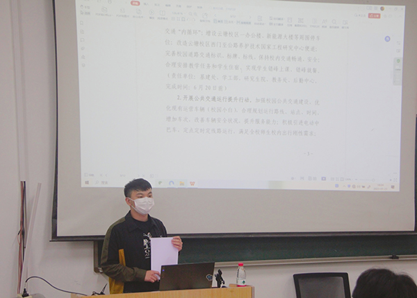 此次会议学生党员、学生干部深入了解学习了学校印发的关于“校园交通”整改方案。面向学生干部,高海老师认真地分析“电动车出行”的弊端,举出多项交通安全事故的实例向同学们阐述整治活动的必要性,同时呼吁大家积极配合整治工作;面向学生党员,李世成老师在会上将学校印发的关于“校园交通”整改方案深入浅出地解释给参会人员,同时指出,我院将遵循“依法整治、规范管理、持续推进、综合治理”原则,师生员工全员参与,广泛开展交通安全宣传教育,落实禁骑和限停摩托车、电动自行车,全力配合学校交通安全实行系统化、科学化综合治理。他们均发出呼吁:希望各位学生党员和学生干部能够担负起责任,充分发挥模范带头作用,积极宣传落实整治工作,为云塘校区建设“清朗校园”贡献一份力量。