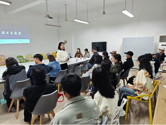 125下午,设计艺术学院在建筑艺术楼C302开展了毕业生职业规划交流会院党委副书记万馨主持心理辅导员李慧2022级辅导员高海、就业辅导员程静征及报名同学参会