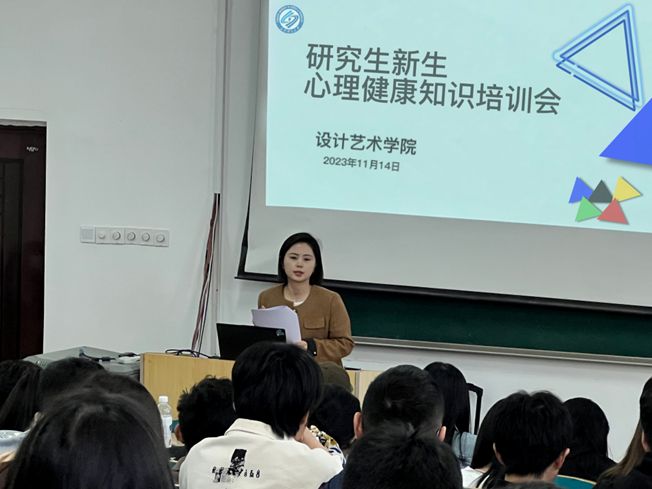 2023年11月14日,设计艺术学院于建筑艺术楼A102成功开展研究生新生心理健康知识培训会,23级共计90名研究生新生参会。在培训会过程中,李慧组织研究生新生共同观看了心理健康线上讲座,该讲座由北京工业大学人文学院教授赵丽琴主讲。