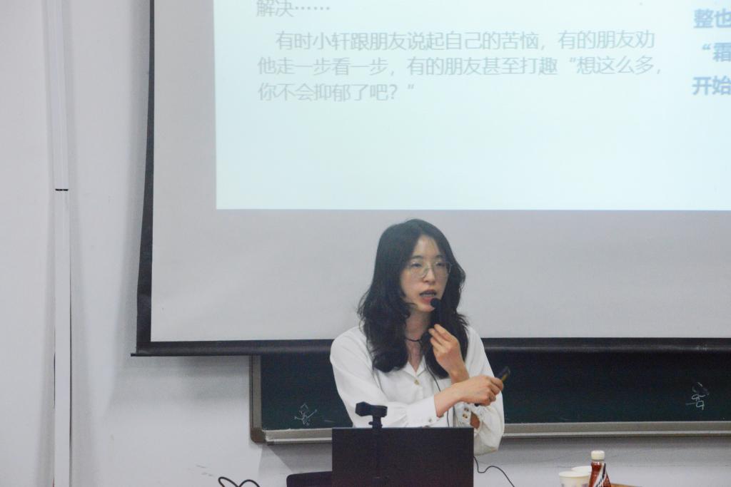 近年来,随着社会发展,竞争压力不断变大,大学生精神疾病尤其是情绪障碍发病呈显著上升趋势。对此,卢灵舢首先详细讲解了躁狂症、强迫症、双相情感障碍等常见多发的精神障碍问题,破除了普罗大众对于心理疾病的普遍错误认知,结合具体实例分析了什么是抑郁、什么原因导致抑郁、抑郁导致的后果等方面的问题。之后,她讲述了常见的大学生自杀前的行为征兆,希望在座的同学们积极关心身边的朋友,并教授了遇见有自杀倾向的同学的解决办法。最后,卢灵舢表示同学们面对心理问题不能逃避,要及时干预、积极治疗、懂得向老师家长和朋友寻求帮助。她对在座的朋辈互助员们呼吁,“每个人的内心都有一束光,渴望爱与被爱,有时光被黑暗隐藏,希望你能做那个点亮光的人”。