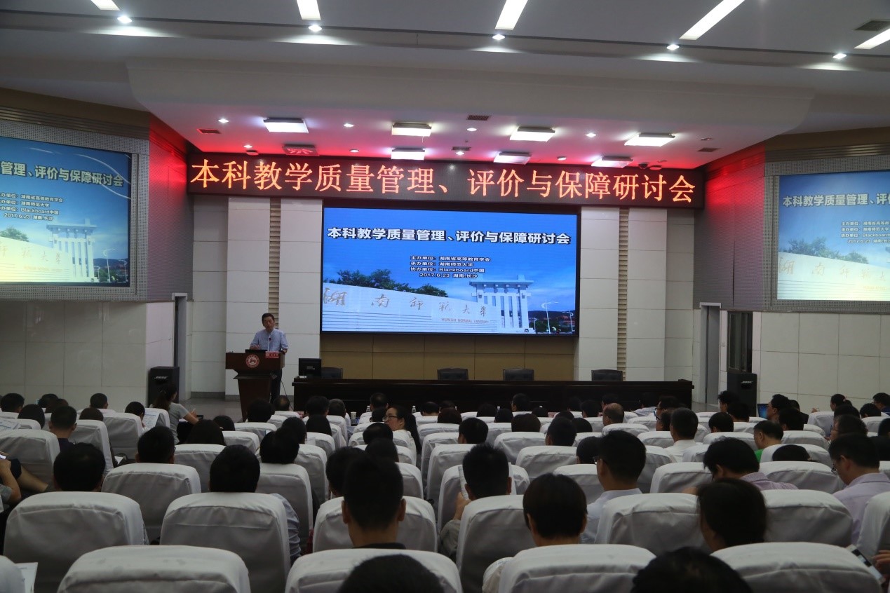 2017年6月23日,由湖南省高等教育学会主办,湖南师范大学承办,blackboard中国协办的本科教学质量管理、评价与保障研讨会在湖南师范大学至善楼学术讲堂举行。湖南省高等教育学会会长蒋昌忠、加州州立大学教授张大鸣、blackboard中国教育研究院首席研究员陈永红以及中南大学、北京大学、南京师范大学等全国70多所高校的200多名专家学者参加会议。会议由湖南师范大学副校长黎大志教授和湖南省高等教育学会姚利民秘书长共同主持,湖南省高等教育学会蒋昌忠会长致辞。beat365教学质量管理与保障部马琳老师参加了会议。