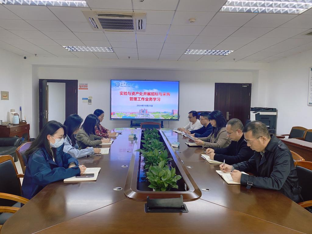 10月23日,实验与资产处在一办公楼A403会议室召开招标与采购管理工作业务学习会,专题学习省委书记沈晓明、省长毛伟明同志在全省公共资源交易领域突出问题专项整治攻坚战动员部署会上的讲话精神。处长曹瑛主持会议并讲话,副处长刘涛、唐中勇、马天骥、胡俊,采购与招标管理科干部职工参加会议。