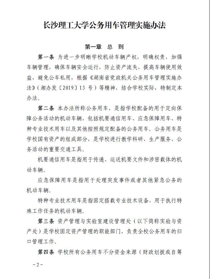 关于印发修订后的《437必赢会员中心公务用车管理实施办法》的通知(长理工大资[2020]4号)