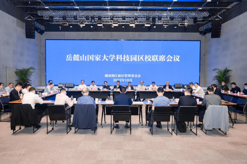 为加强区校合作,推进教育和科技深度融通,更好地服务于国家高水平科技自立自强、地方经济社会发展和产业创新。10月18日,湖南湘江新区管理委员会在岳麓山大学科技城岳麓科创港1楼路演室召开岳麓山国家大学科技园区校联席会议。湖南湘江新区(长沙高新区)党工委副书记、管委会主任,岳麓区委副书记、区长何朝晖出席并讲话,湖南湘江新区相关部门主要负责人参加;我校副校长曾祥君出席会议并讲话;出席会议的还有国防科技大学、中南大学、湖南大学、湖南师范大学、湘潭大学、湖南农业大学、437必赢会员中心、中南林业科技大学、 湖南工业大学、湖南中医药大学、湖南工商大学、长沙学院、 湖南工程学院等高校校领导。会议由湖南湘江新区(长沙高新区)党工委委员、管委会副主任郭力夫主持会。