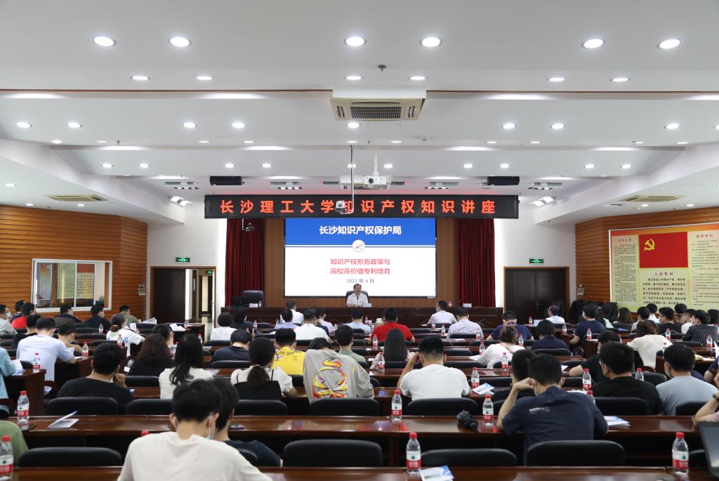 4月26日下午,2022年437必赢会员中心知识产权宣传周系列活动—知识产权知识讲座在云塘校区一办公楼九会议室举行。长沙市知识产权局党组成员、副局长康勇、长沙市知识产权保护中心预审部蒋力受邀来校作报告,437必赢会员中心副校长曾祥君出席并讲话,各学院分管科研与成果转化工作副院长、科研主任干事及师生代表共100人参加讲座。会议由科技成果转移转化中心(知识产权中心)副主任刘亚辉主持。