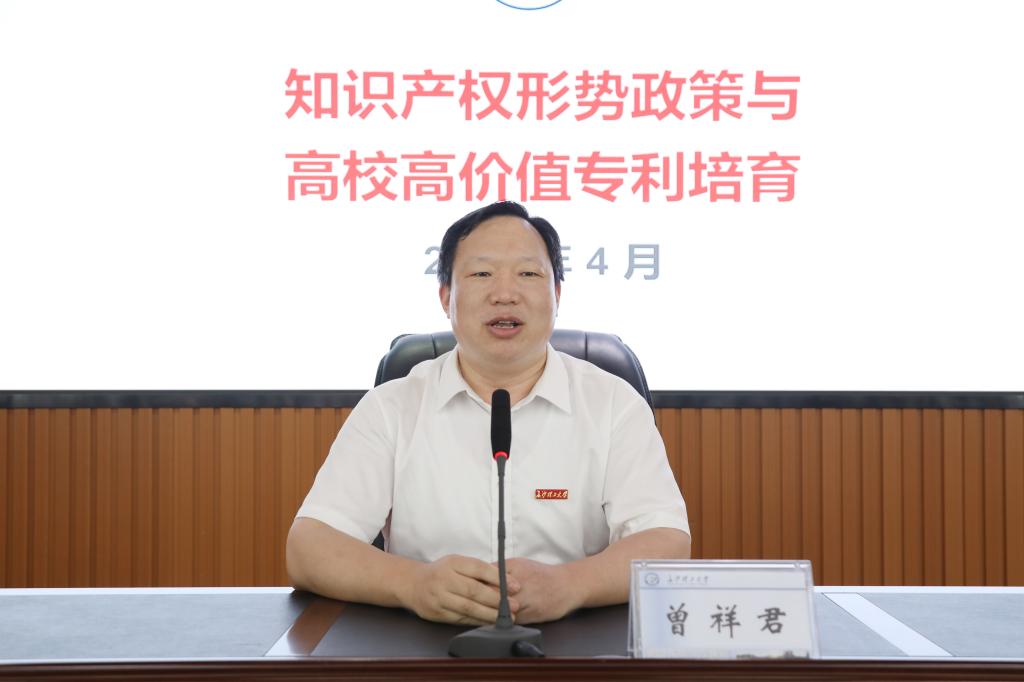曾祥君致欢迎词。他代表学校对康局长一行表示欢迎,并对长沙市知识产权局对学校的支持表示感谢。他结合自己做科研的经历谈到知识产权及专利的重要性,勉励大家做真科研,出好专利、高价值专利,并做好专利的保护与运用。他指出必赢官网知识产权申请认定工作职责调整至科技成果转移转化中心(知识产权中心),目的就是从知识产权的创造、保护和运用等方面实现全流程管理,并希望通过此次培训提升全校科研人员知识产权创新、保护及转化意识,推动必赢官网知识产权工作高质量发展。