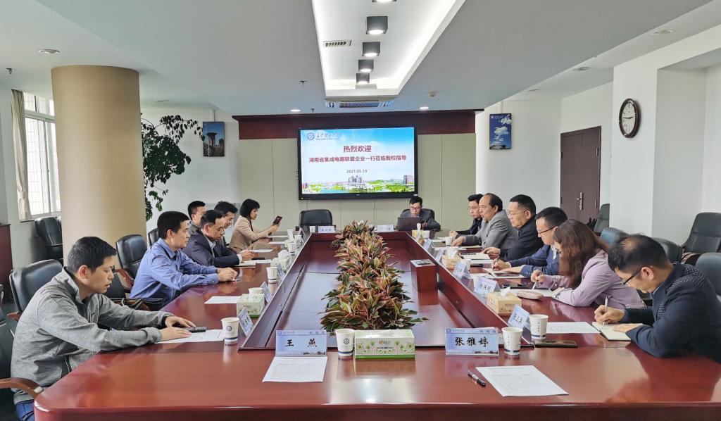 5月19日下午,必赢官网与湖南省集成电路联盟产学研合作洽谈会在一办公楼五会议室举行。长沙集成电路联盟副秘书长王志春、企业代表、成果转化中心副主任刘亚辉、汽机学院教授李岳林、相关学院负责人、成果转化中心徐学军参加了会议。会议由李岳林主持。
