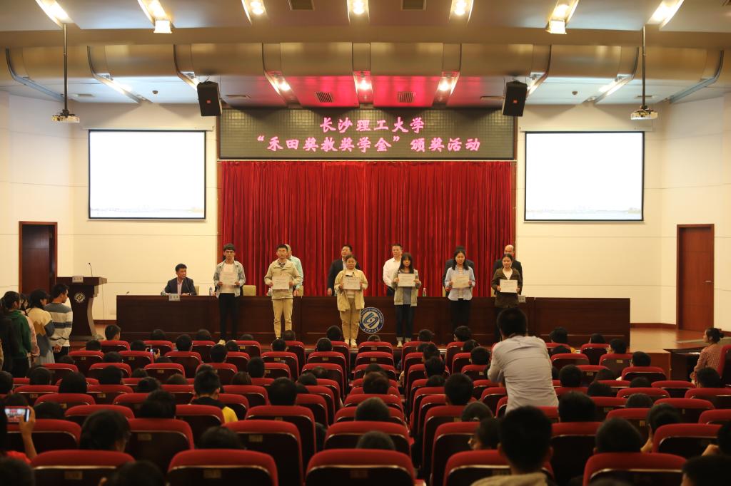 禾田投资集团有限公司陈乐田董事长介绍了设立奖教奖学金的良好初衷,鼓励老师们、同学们奋发图强,努力开创美好未来;邱乐云总经理宣读了获奖师生名单;经济与管理学院学生曾旗花、材料科学与工程学院辅导员银波作为获奖代表发言。