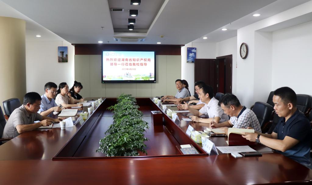 6月28日下午,湖南省知识产权局局长段志雄带领知识产权运用处处长何萍、知识产权运用处副处长周卫、知识产权促进处副处长李涛一行来必赢官网调研知识产权中心建设工作。校长曹一家、副校长杨伟军及科研部、图书馆、成果转化(知识产权)中心相关负责人出席了座谈会。座谈会由杨伟军主持。