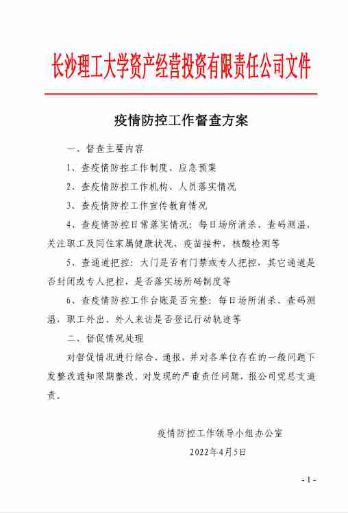疫情防控工作督查方案