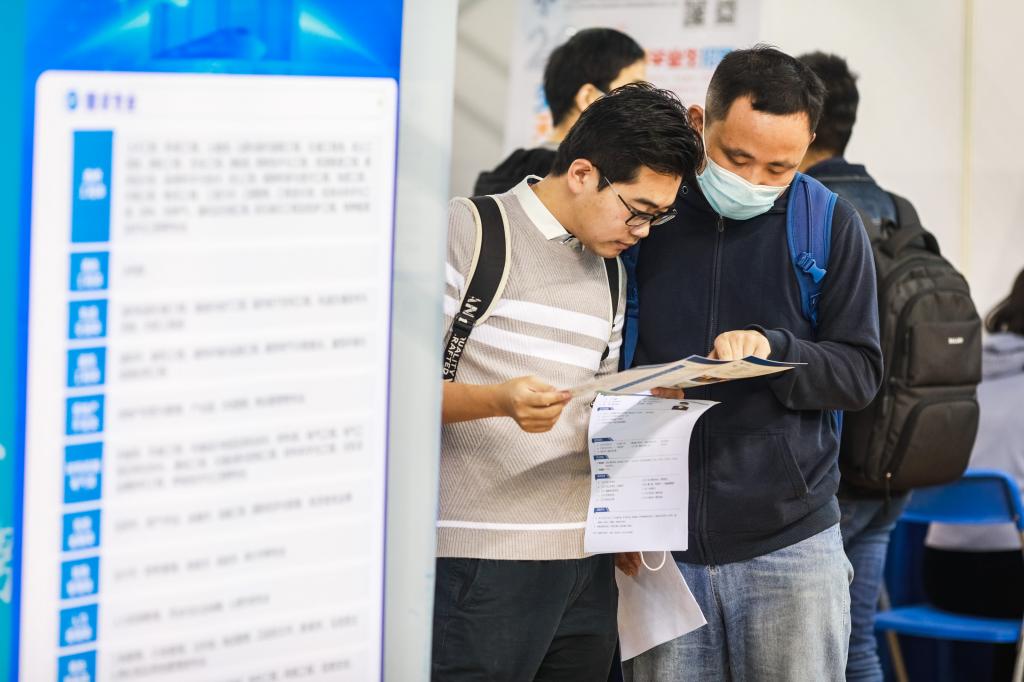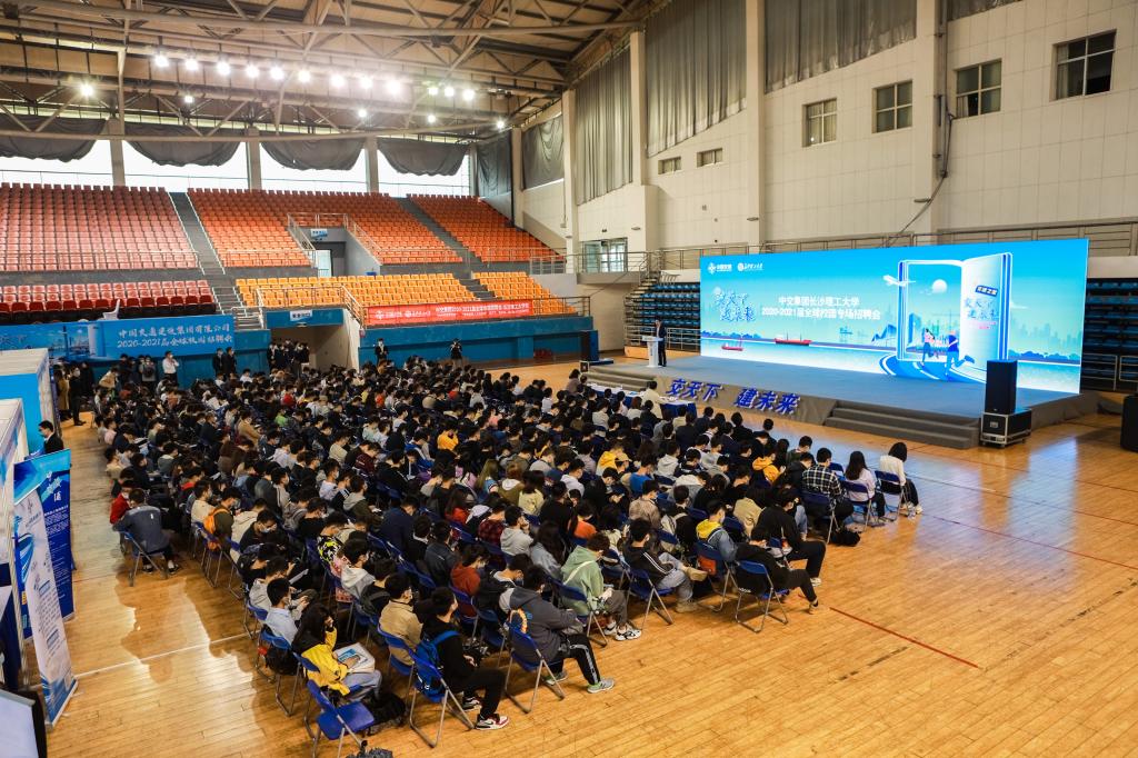 最后,中交集团锐力量宣传团用别开生面的宣讲方式为专场招聘会拉开了帷幕。招聘现场人头攒动,咨询与应聘的学生都在每个展位前排起了长队,学生们手持多份简历,寻找符合意向的单位。