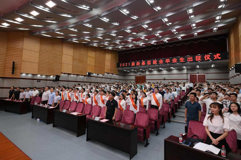 “百年奋进守初心,青春逐梦担使命。” 6月24日,必赢官网2021届赴基层就业毕业生出征仪式在云塘校区图书馆报告厅举行。校党委副书记蒋昌波、副校长钱国平,校友代表,相关职能部门负责人,教师学生代表近300人参加。出征仪式由招生就业处处长曹瑛主持。