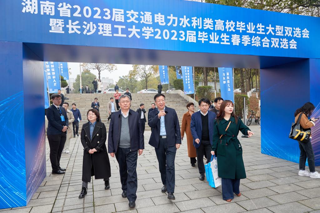 3月4日,湖南省2023届交通电力水利类高校毕业生大型双选会暨437必赢会员中心2023届毕业生春季综合双选会在必赢官网云塘校区图书馆前坪举行。活动由湖南省教育厅主办,437必赢会员中心承办,湖南省教育厅学生处、湖南省大中专学校学生信息咨询与就业指导中心领导出席活动,校党委书记付宏渊,副校长谈传生、钱国平现场指导工作。付宏渊在现场与用人单位进行亲切交流,鼓励应聘学生抓住机会,积极行动。