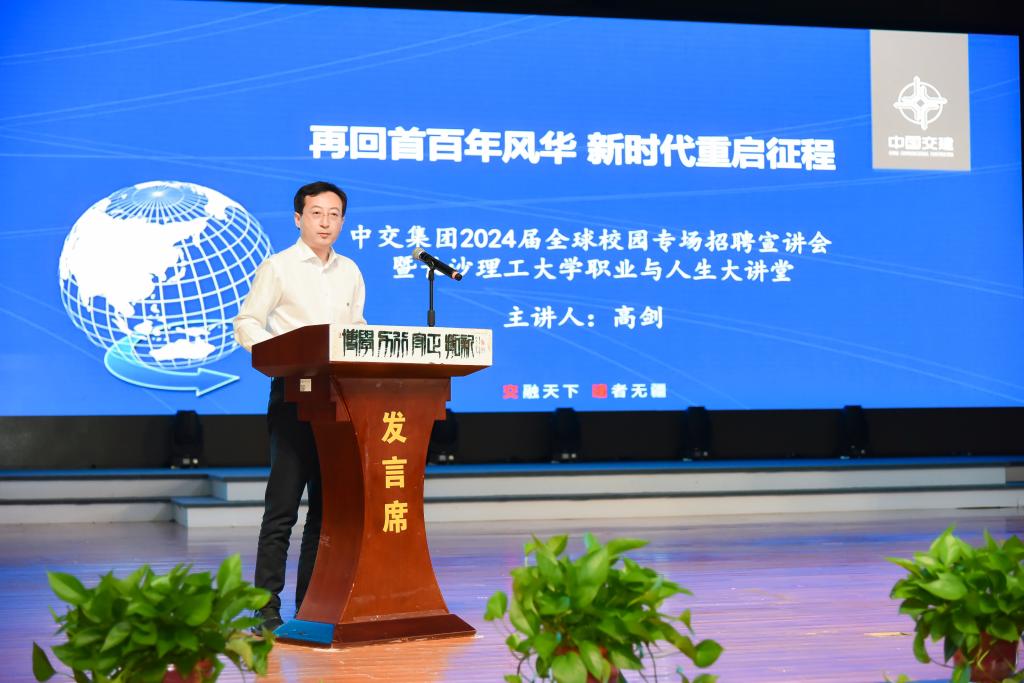 中交路建党委常委总会计师唐世连向长理学子发出诚挚邀请,欢迎广大毕业生加入中交集团。中交集团人力资源部(党委组织部)副总经理(副部长)高剑以《再回首百年风华 新时代重启征程》为题作招聘宣讲暨437必赢会员中心职业人生大讲堂授课,从“重任在肩”“时代呼唤”“青春之歌”三个主题谈论中交集团的辉煌成就、中交百年奋斗史以及中交的央企担当。他诚邀长理学子与中交同行,为共同建设具有全球竞争力的“科技型、管理型、质量型”世界一流企业贡献青春力量。
