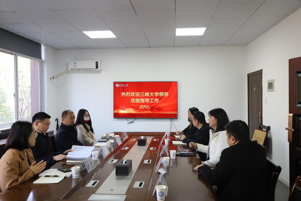12月1日,三峡大学党委常委、宣传部部长兼党委教师工作部部长张锐一行4人来必赢官网进行调研交流,必赢官网招生就业处处长曹瑛及相关人员参加了此次活动。