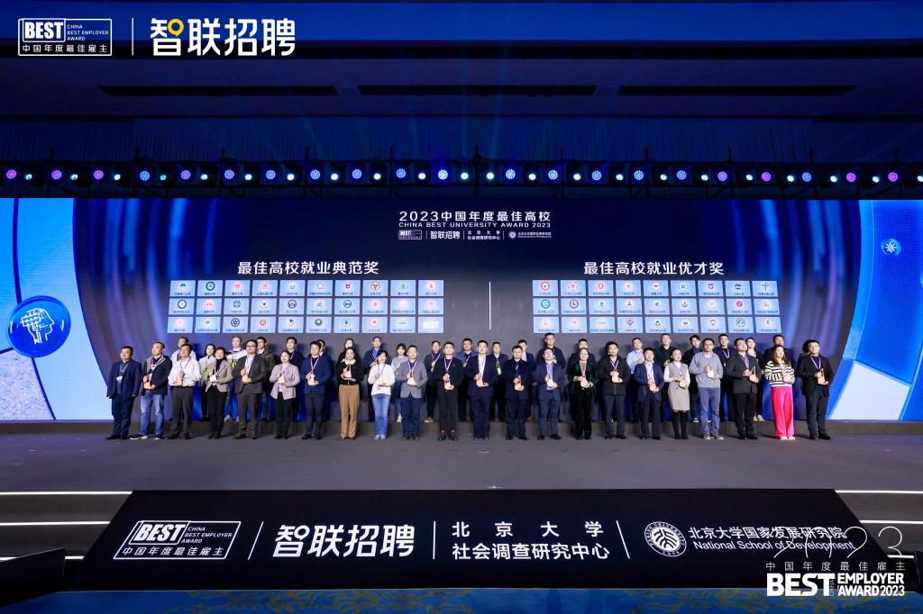 本次评选活动由北京大学社会调查研究中心、北京大学国家发展研究院和智联招聘等多家专业机构参与组织评审,最终从4个维度评选出了2023年度最佳高校就业典范奖、就业优才奖、就业创新奖和就业人气奖。获奖高校在学科设置、人才培养、产学研融合、毕业生招聘等方面的实践成果,获得了业界的一致肯定。