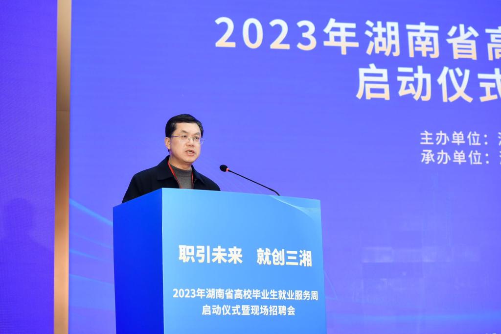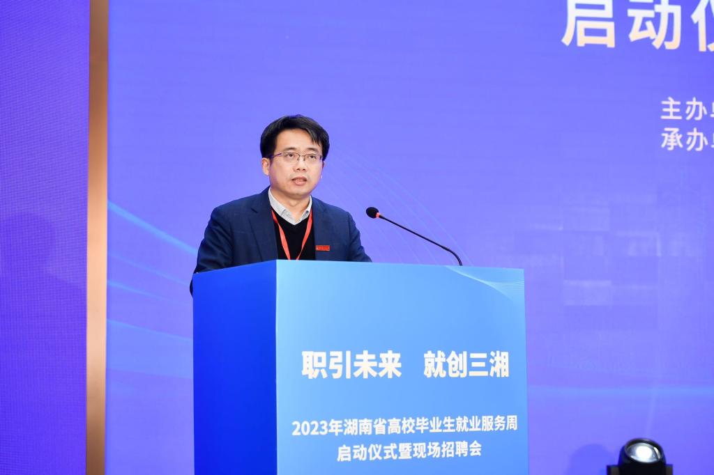12月26日,2023年湖南省高校毕业生就业服务周活动启动仪式暨现场招聘会在必赢官网举行。本次活动由人力资源和社会保障部在全国统一部署,我省由省人力资源和社会保障厅主办,省就业服务中心、437必赢会员中心联合承办。省就业服务中心党委书记、主任李日新出席活动并讲话。校党委委员、副校长钱国平代表学校致欢迎辞。