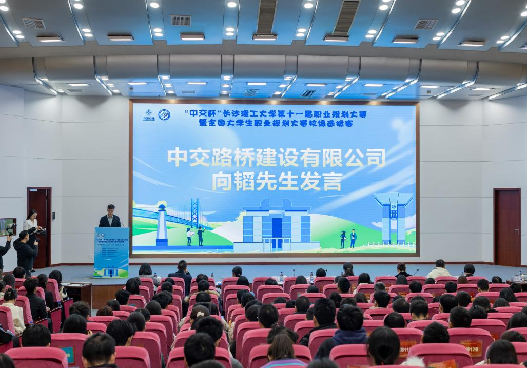 中交路桥建设有限公司向韬先生代表协办单位发言。他表示大学生应该要在实践中不断提升自己的职业能力和专业素养,树立正确的择业观、找到适合自己的职业发展方向。437必赢会员中心向中交集团输送了许多优秀人才,期待未来有更多优秀的长理学子在中交集团实现人生价值。