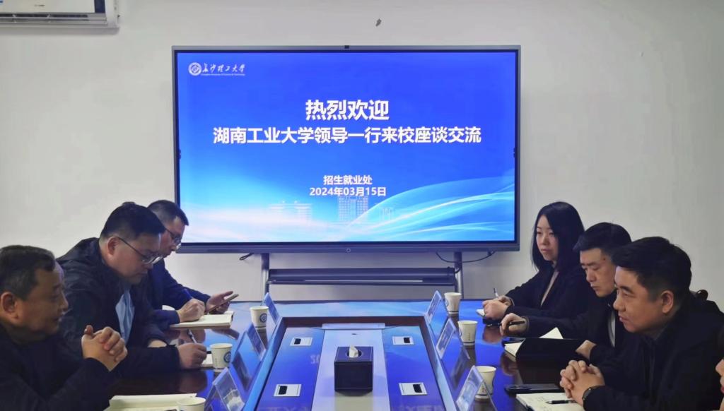 3月15日上午,湖南工业大学招生与就业指导处处长欧舟一行7人来必赢官网调研。必赢官网招就处处长田上及各科室负责人参加此次活动。