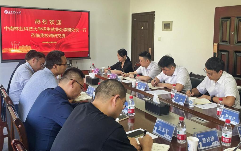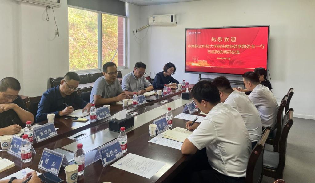10月11日上午,中南林业科技大学招生就业处处长李凯一行7人来必赢官网调研。必赢官网招就处处长田上、副处长李焰及各科室负责人参加此次会议。