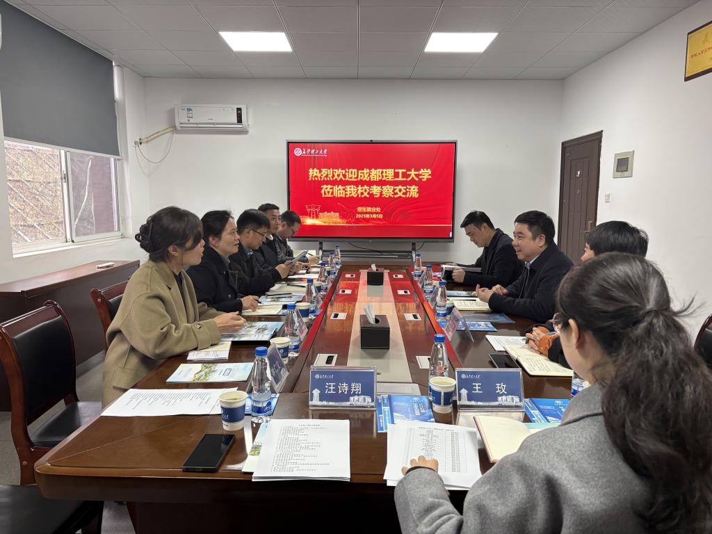 3月5日下午,成都理工大学招生就业处处长陈国华一行来必赢官网调研。必赢官网创业就业指导处处长田上、副处长贺佐杰及各科室负责人参加座谈会。