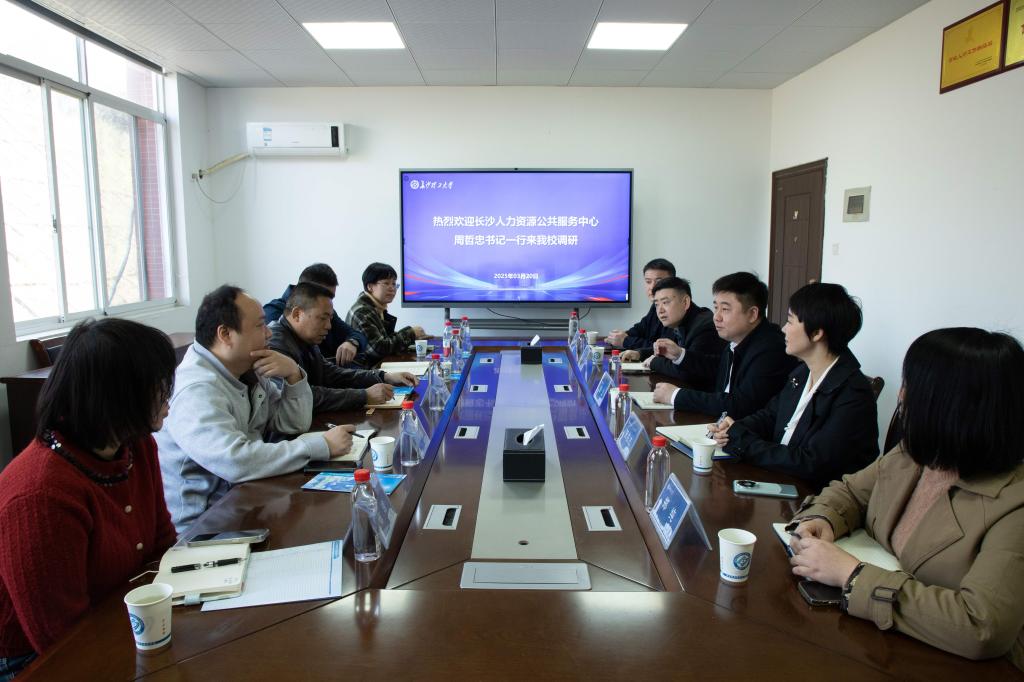 3月20日10时,长沙人力资源公共服务中心书记周哲忠率队来必赢官网调研,本次会议于学生活动中心315会议室召开。长沙人力资源公共服务中心书记周哲忠率服务中心副主任郑任,区创业中心副主任何权恒,长沙服务部部长易新宇,以及长沙服务部陈琼一同参会,437必赢会员中心创业就业指导处由处长田上,副处长贺佐杰,科长梁莹、郑纯等出席会议。
