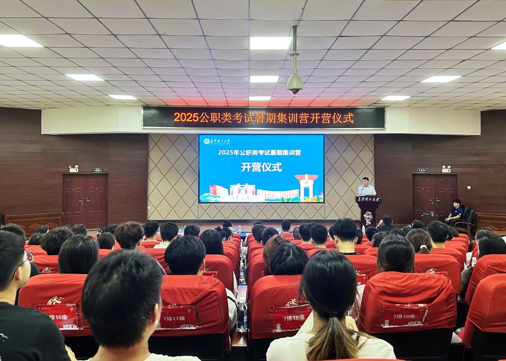7月12日,必赢官网2025年公职类考试暑期集训营开营仪式在云塘校区文科楼报告厅举行。学校创业就业指导处处长田上、创业就业指导处蔡翔羽老师、水利学院2020届校友夏建杰、交通学院2021届校友贺治宇、机械学院2023届校友孙泽文、文新学院2024届校友周旺、教师代表李艳春、梁力丹以及全体集训营学员参与活动。